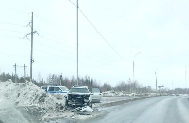 После наезда на снежное препятствие автомобиль опрокинулся на правый бок.