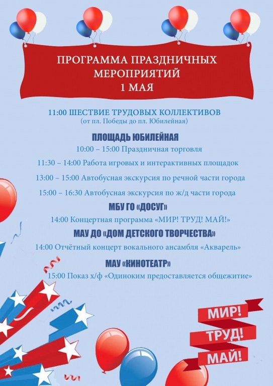 Программа мероприятий, посвященных празднику Весны и Труда: