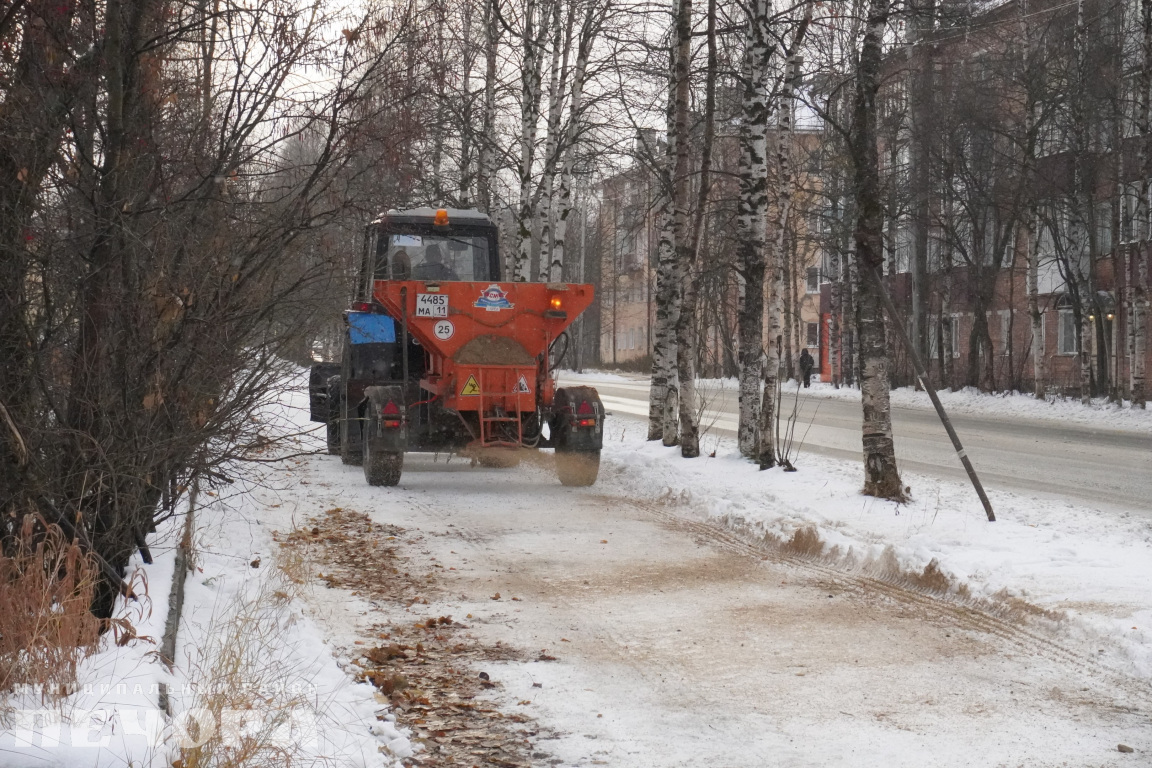 В связи с установлением зимней погоды и снежными осадками, в Печоре началась активная работа по содержанию улично-дорожной сети в надлежащем состоянии. Подрядная организация приступила к очистке дорог и тротуаров, посыпке их противогололедными материалами.